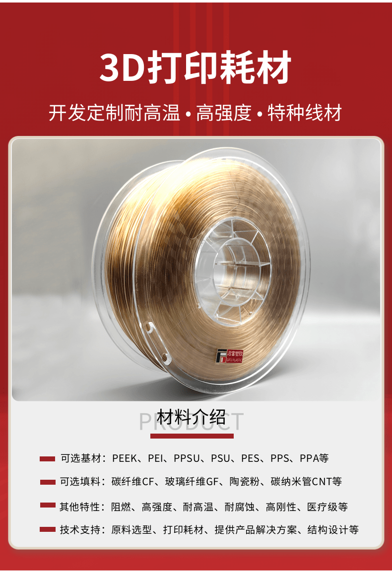 ppsu高性能耐高温特种3d打印耗材ppsu是指以高温特种塑料ppsu为基材,添加碳纤维、玻璃纤维、碳纳米管、陶瓷粉等物质,采用连续挤出工艺生产的ppsu特种塑胶3d打印线耗材,启富塑胶的3d打印耗材具备排线整洁、无气泡、高纯度、出线顺畅、不堵塞、线径稳定、成型不翘边、熔指稳定等特点。